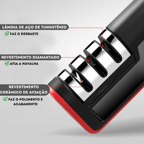 Esse afiador de faca é perfeito para o dia a dia na cozinha e essencial para manter as facas sempre prontas no churrasco. Também é um excelente amolador de tesoura, proporcionando resultados rápidos e práticos.