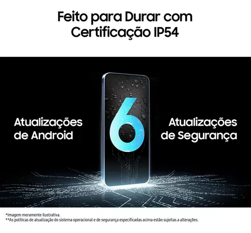 Com certificação IP54, até 6 atualizações de Android e Segurança e uma tela Super AMOLED FHD+ de 6.7”, o Galaxy A16 permite que você mergulhe no seu conteúdo favorito com cores vívidas e uma tela ampla.