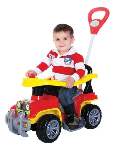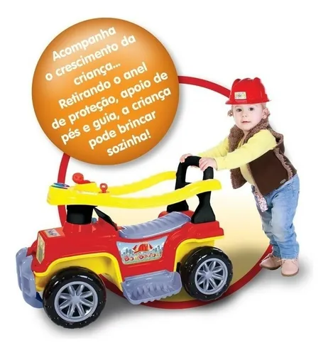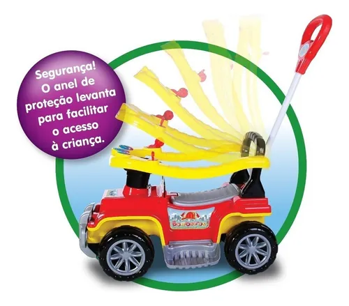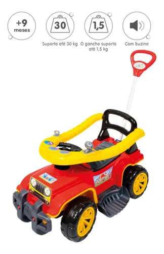 A linha de carrinhos Jip Jip conta com quatro modelos distintos: Colorido, Menina, Militar e Bombeiro. Desenvolvidos para acompanhar o crescimento da criança, esses carrinhos possuem características de segurança como anel de proteção elevável para facilitar o acesso da criança e apoios de pés removíveis. A haste guia permite ao adulto controlar a direção, com rodas dianteiras que giram para os lados, além de contar com um gancho para pendurar objetos de até 1,5 kg. O carrinho também oferece elementos interativos, como uma chave que gira, um câmbio que emite som de “creck-creck” e uma buzina com som divertido. Com capacidade para suportar até 30 kg, o carrinho pode ser utilizado sem a haste guia, o anel de proteção e os apoios de pés, proporcionando à criança a liberdade de brincar de forma independente.
