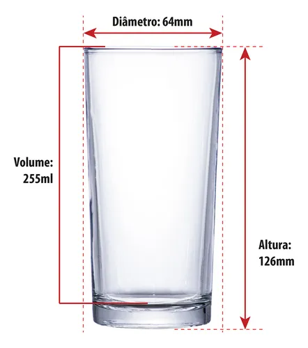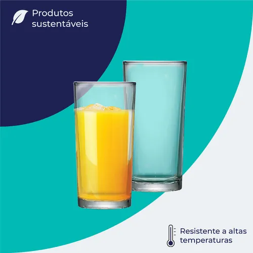 Conteúdo da Embalagem: 6 Copo de Vidro 255ml, Long Drink, Ruvolo.