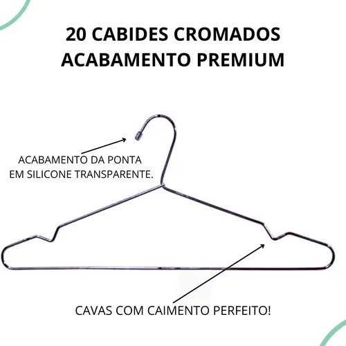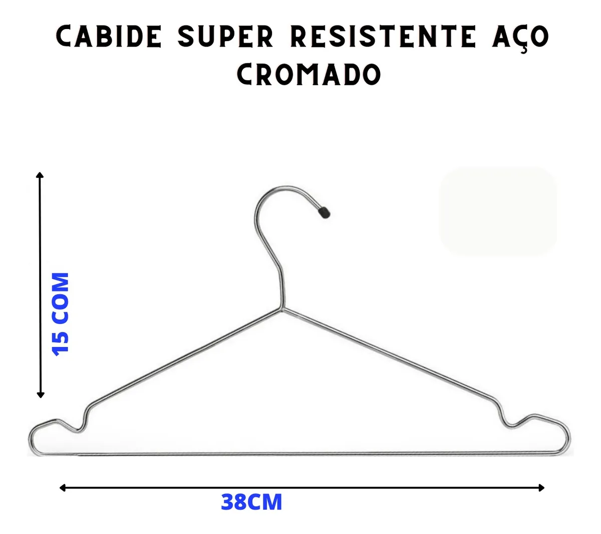 Cabide-Aço- Cromado- Metal- Tintureiro- Cava- Adulto- Roupas- Executivo- Organização Praticidade- Armário- Arara- Cabideiro- Closet- Guarda- Roupa- Loja- Lojista- Atacado Revenda- Resistente- Reforçado- Barato- Promoção
