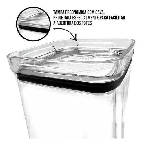 O sistema de vedação é perfeito. Mantém os alimentos frescos por muito mais tempo. Ideal para guardar bolachas, biscoitos, massas, doces, salgadinhos, nozes, cereais, grãos e etc.