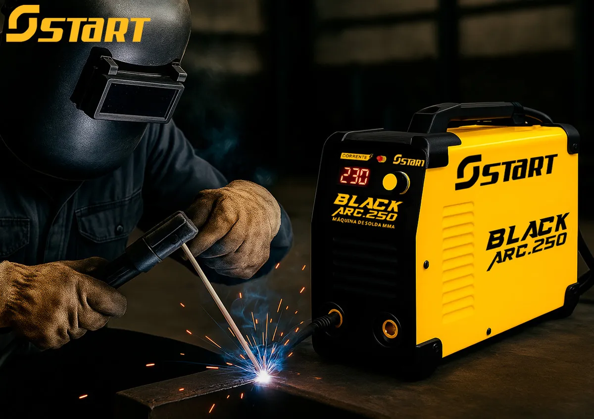A máquina de solda Black Arc 250A da Start é um equipamento profissional versátil para soldagem MMA e TIG. Com design compacto e portátil (apenas 3,8kg), oferece alto desempenho em um pacote leve e eficiente, ideal para diversos trabalhos em metalurgia.