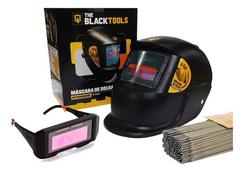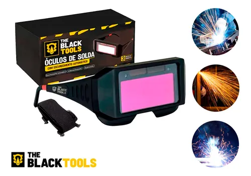 Leve, com design equilibrado, A máscara de solda The Black Tools, protege o usuário de partículas volantes frontais, radiação ultravioleta, infravermelho e luminosidade intensa.