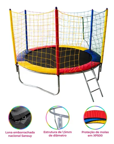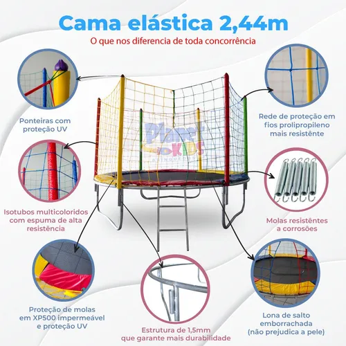 Cama elástica nacional de 2,44m STANDART é ideal para uso residencial.