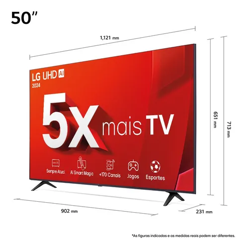 Smart TV 4K 50″ LG UHD 50UT8050 Processador a5 Ger7 AI Alexa/Chromecast integrado Otimizador de Jogos webOS 24 Controle Smart Magic