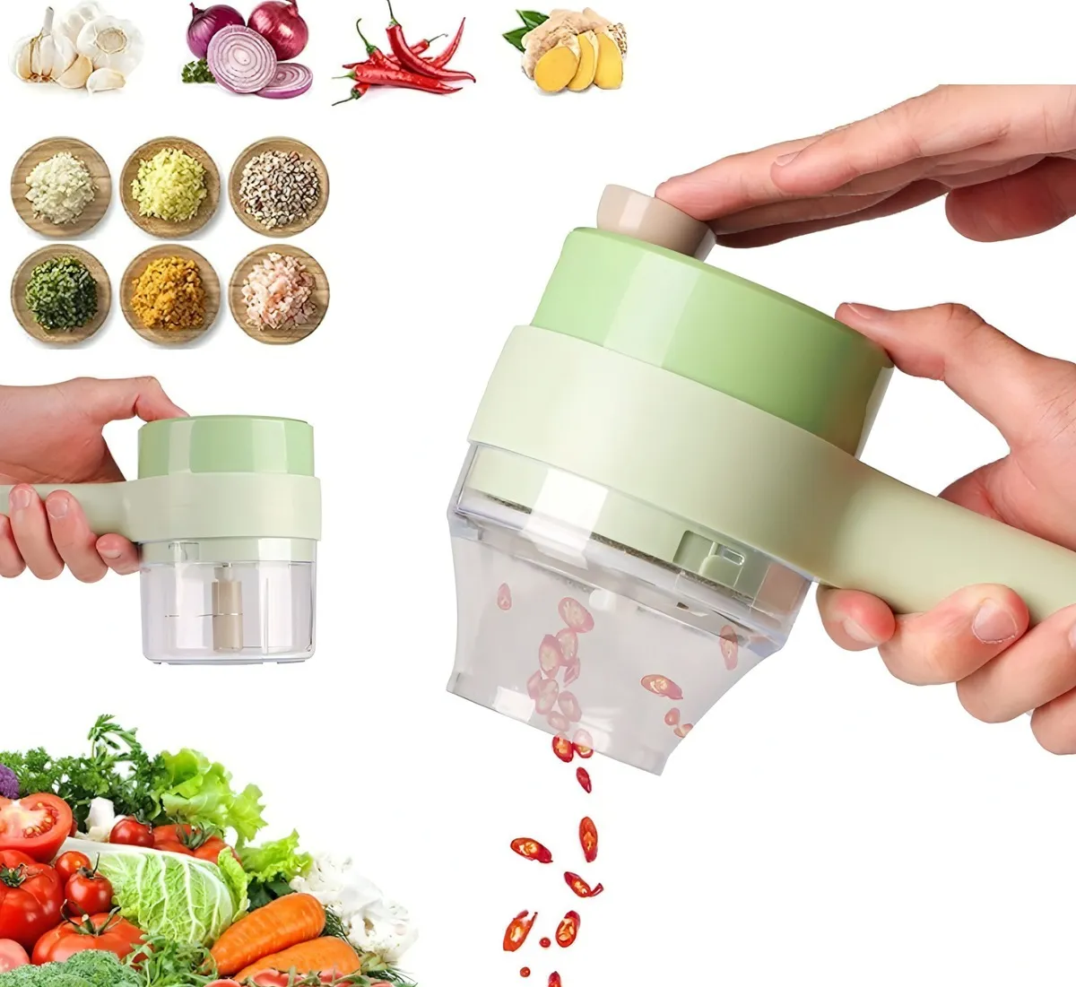 É mais conveniente cortar seus vegetais frescos direto no recipiente, adicionar a mistura o condimento que desejar de forma super prática. Utilize para triturar diversos vegetais e condimentos como cebola, alho, pimenta, salsinha, cominho, gengibre e entre outros.