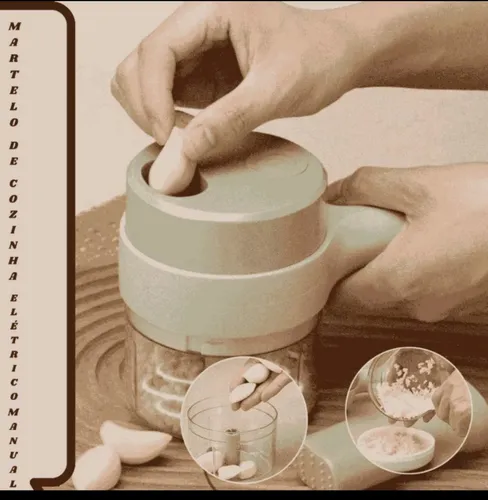 Com ele, você pode triturar alho, fatiar legumes e frutas e moer carnes com rapidez e praticidade. Ele tem um design sofisticado que vira uma escova de limpeza, que pode ser usada para lavar o aparelho com água. Ele também tem um corte tipo pistola, que permite cortar os alimentos direto no recipiente, sem precisar de outro utensílio.